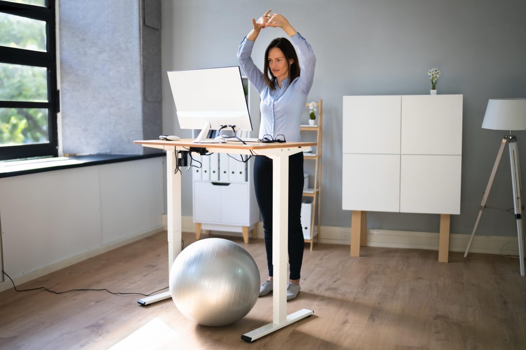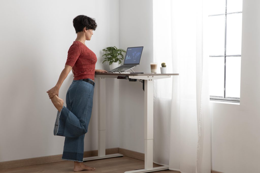 Even with standing desks, holding one posture for too long can lead to fatigue, tight hips, neck strain, and lower-back discomfort. A good standing desk workout solves this by: