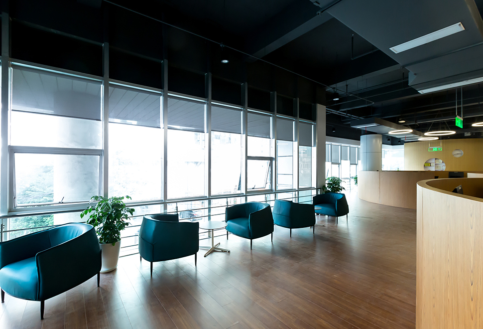 Reception and lounge spaces offer a balanced environment — combining professionalism for external visitors and comfort for internal staff.